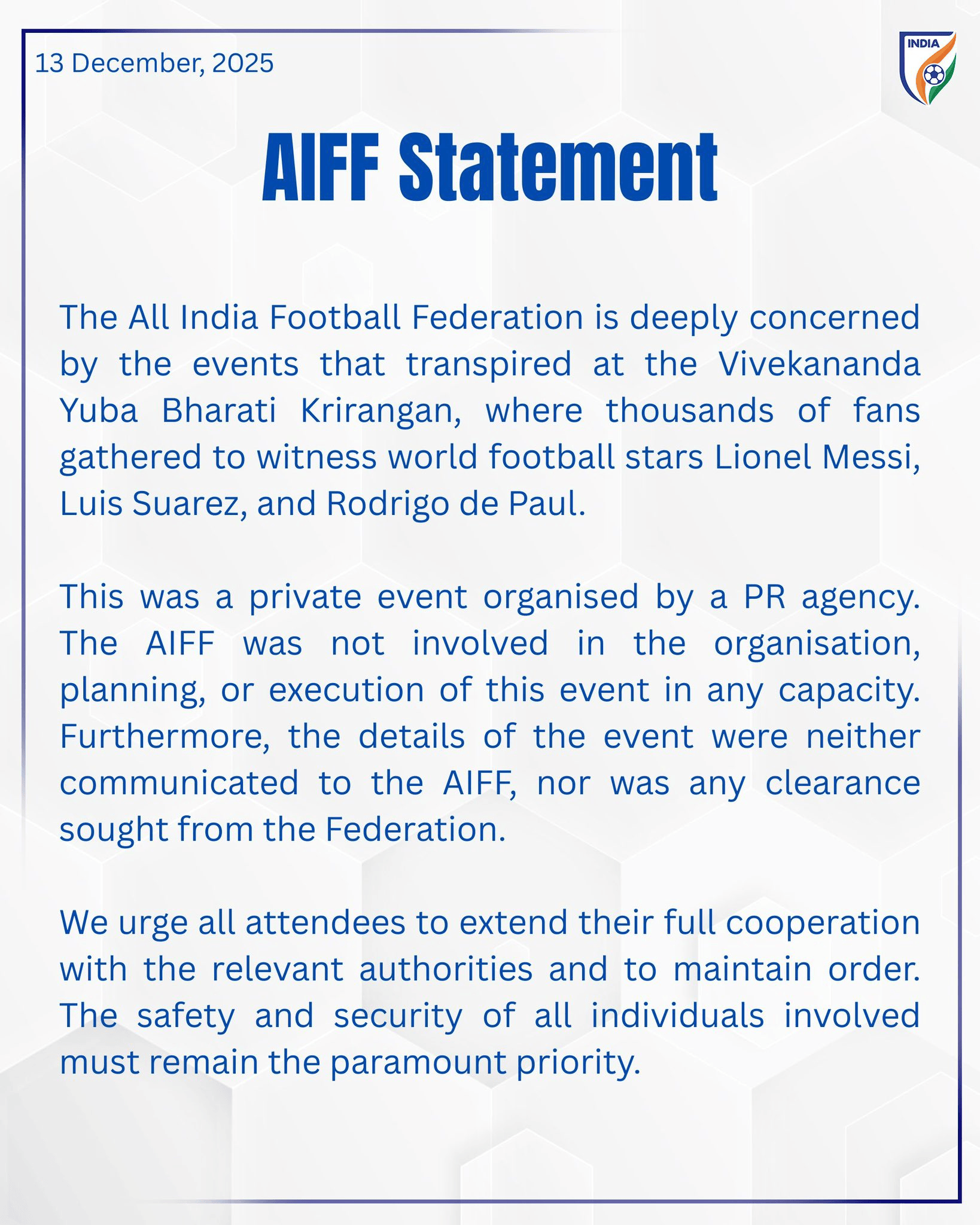 印度足协官方公告:梅西印度行活动未申报,未获得任何许可