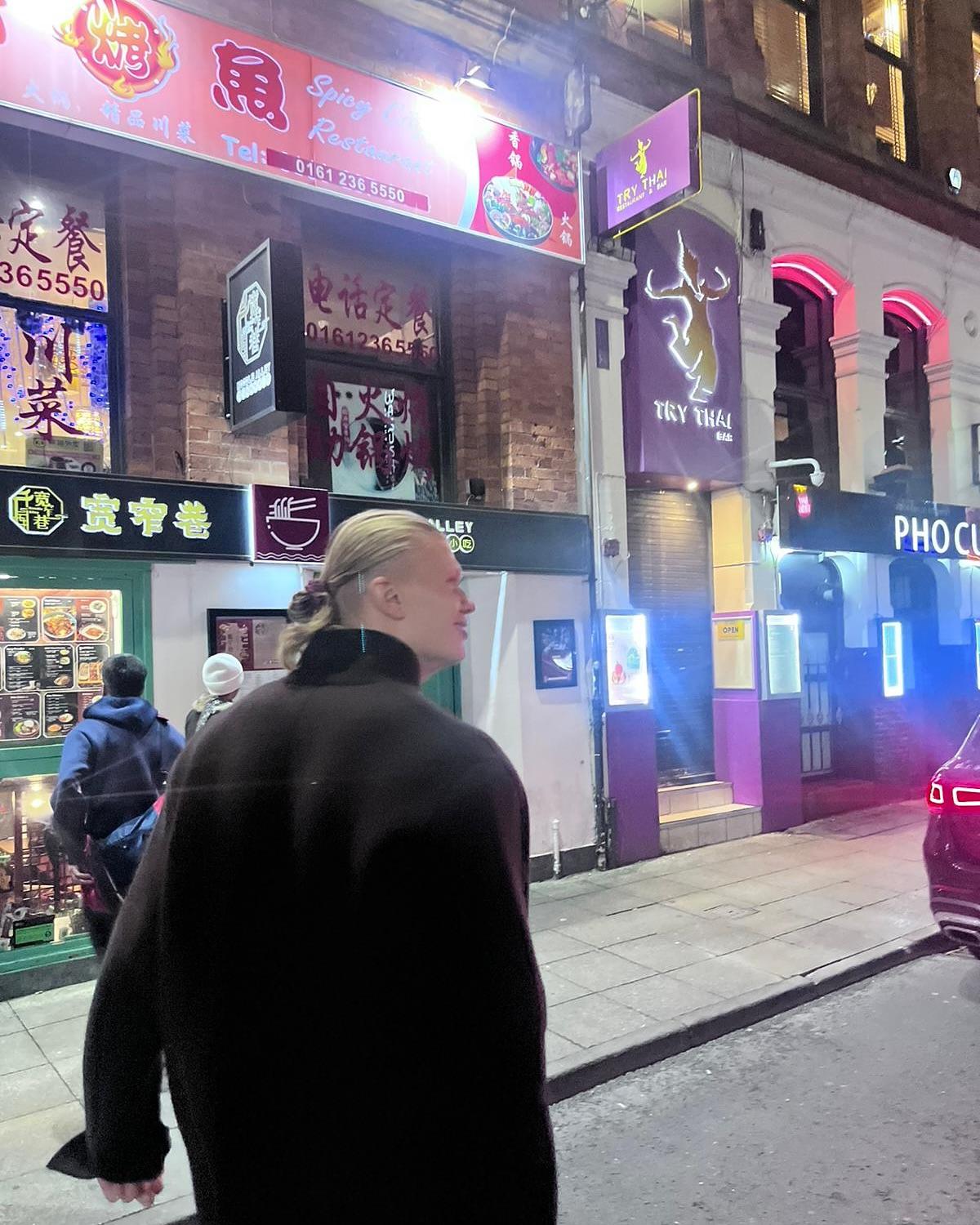 哈兰德Ins晒漫步街头的照片,还品尝了广式烧腊