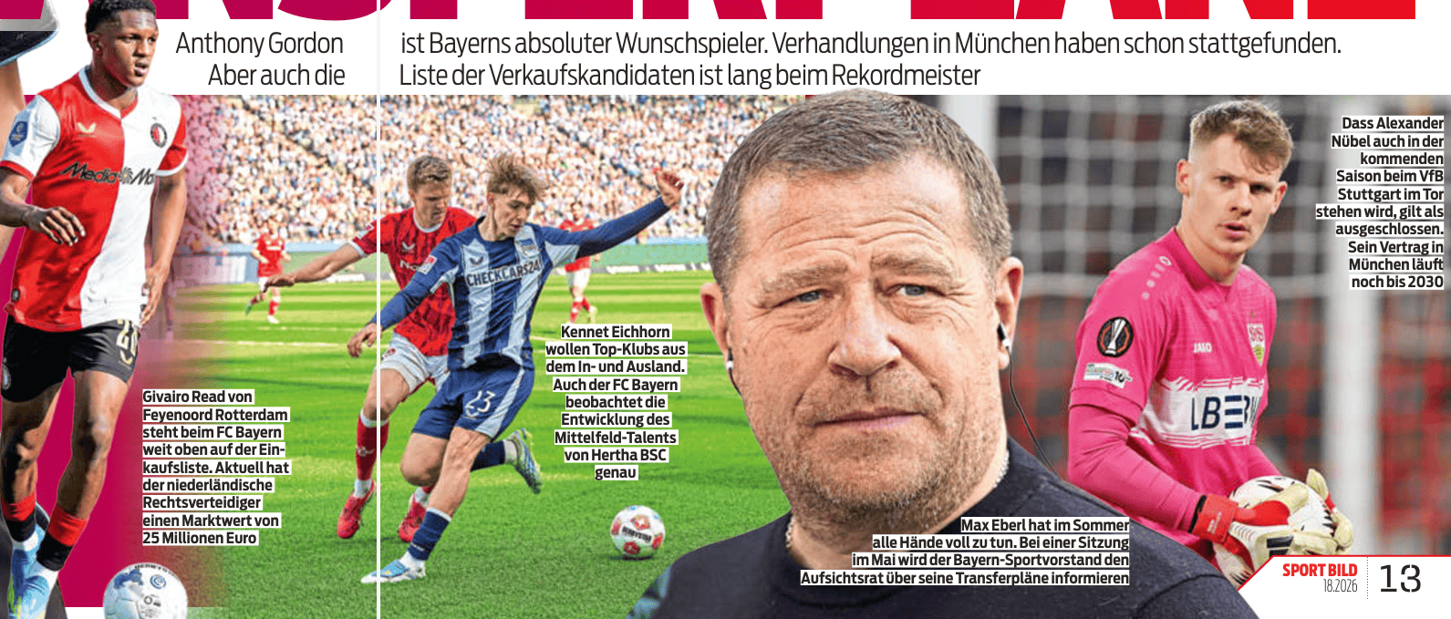 法尔克:戈登转会费大约在6500万镑,拜仁准备支付这个金额