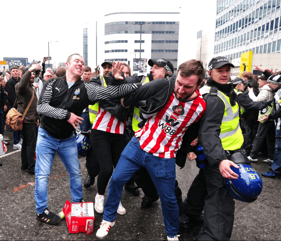 纽卡对桑德兰赛前球迷爆发冲突,现场秩序混乱警方被迫介入