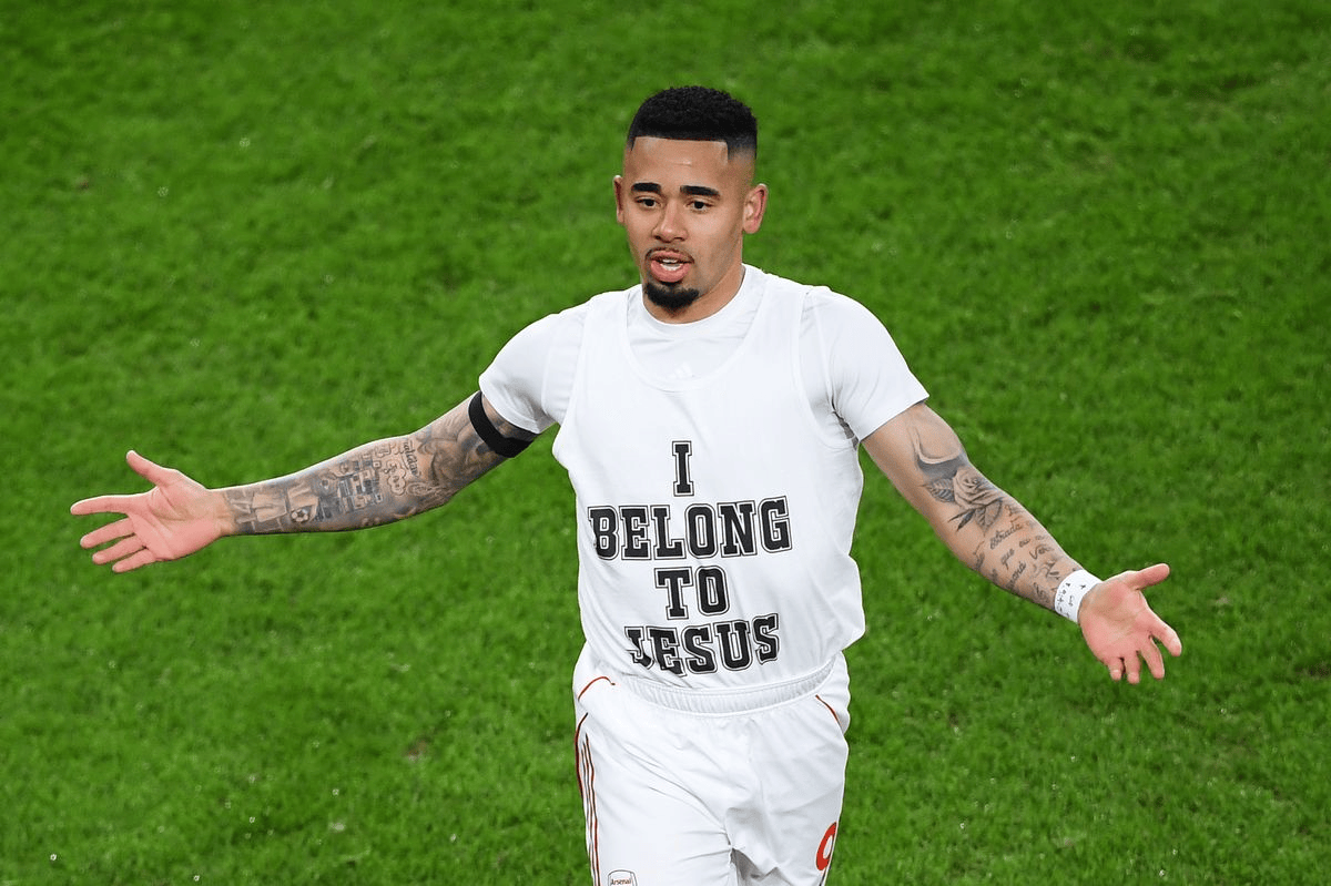 跟队:违反英足总相关规定,热苏斯展示宗教标语可能被罚