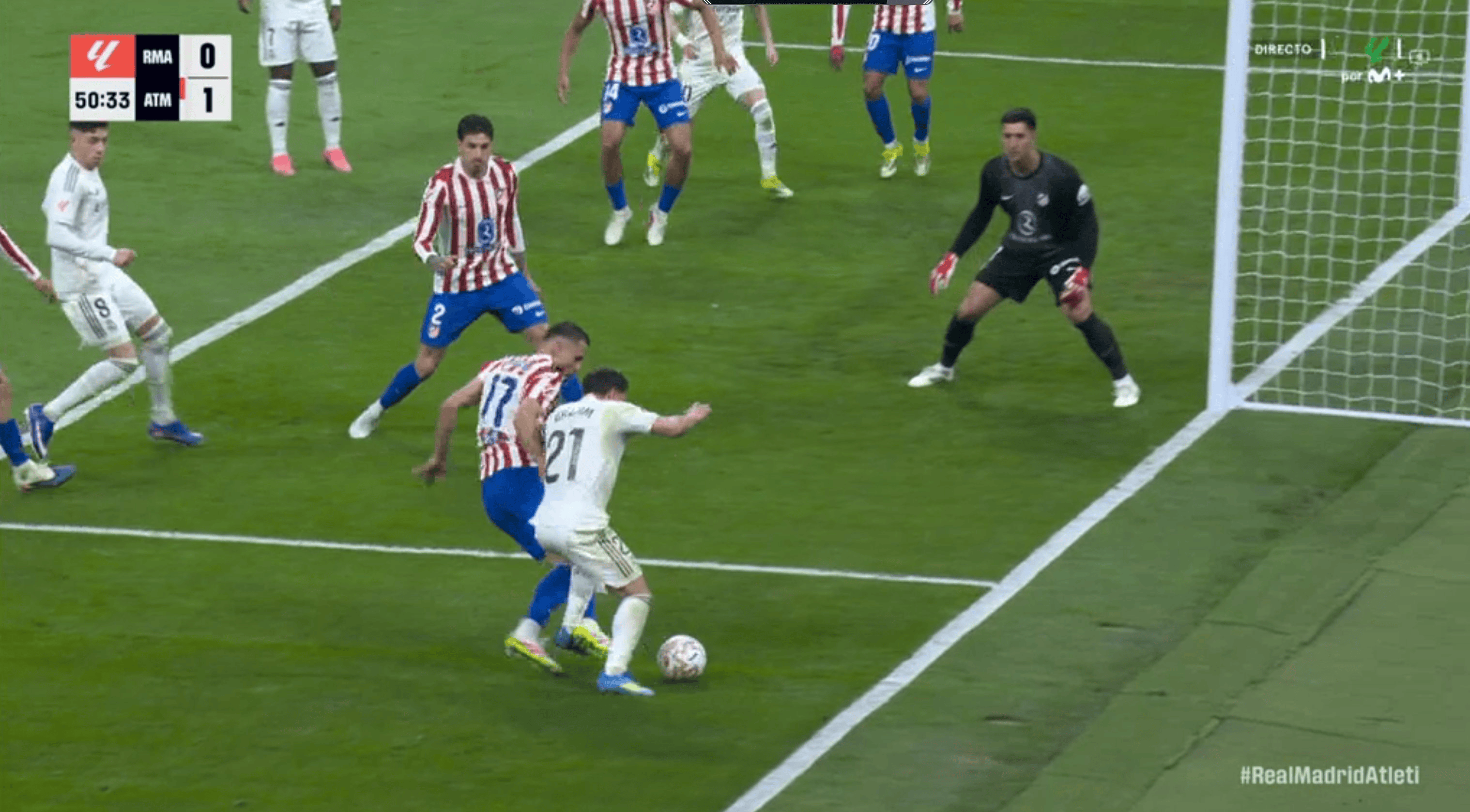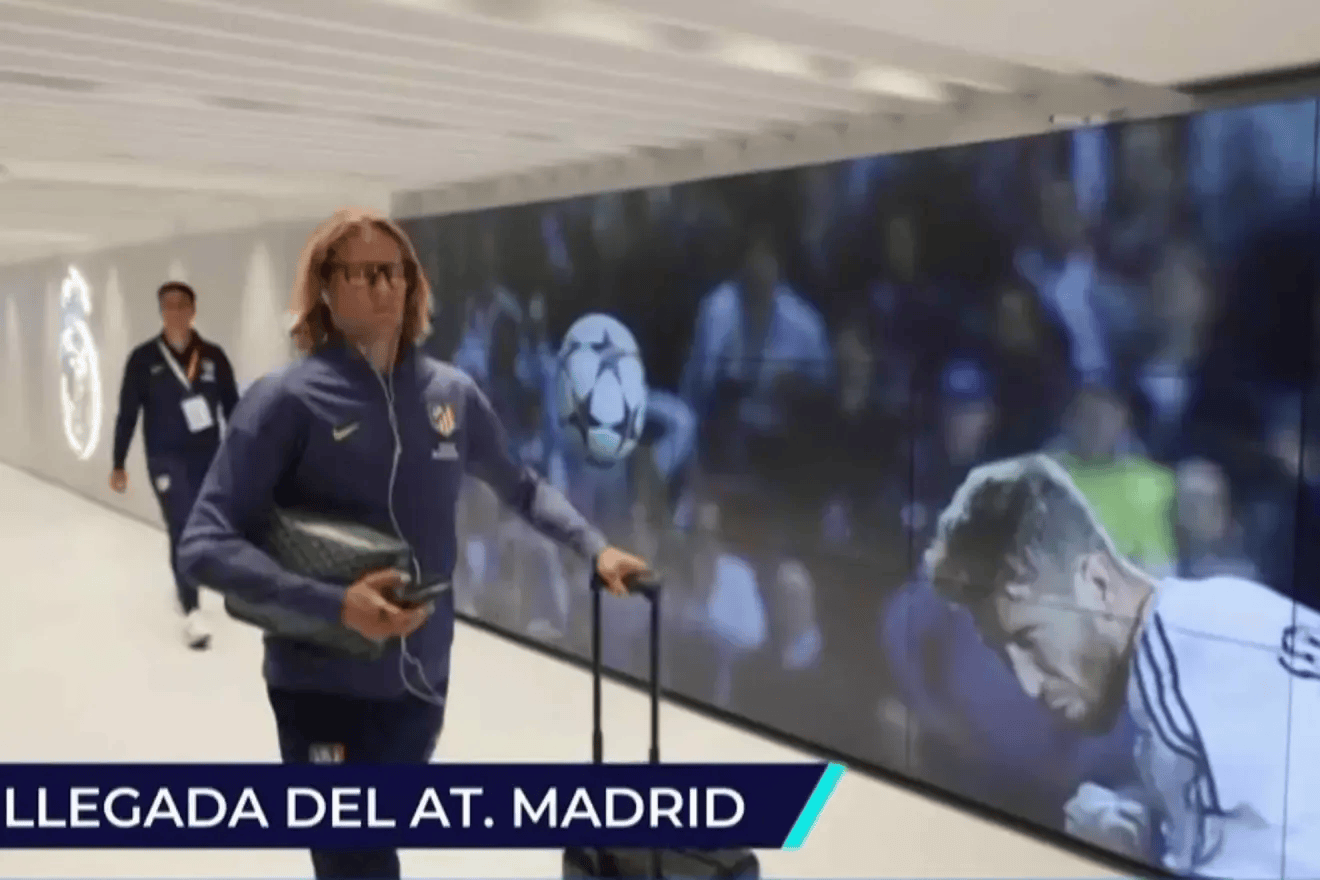 马竞抵达伯纳乌,通道循环播放拉莫斯头球+米兰点球大战画面