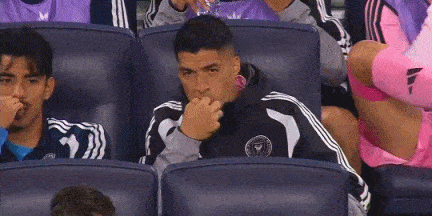 替补待命,苏亚雷斯坐在替补席上啃起了手指