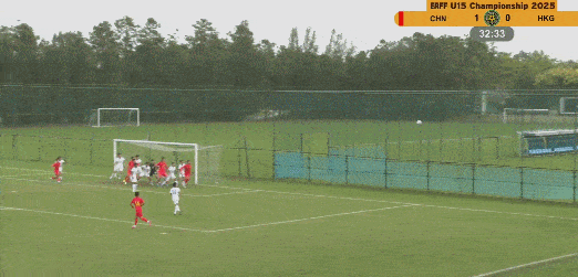 中国的角球开到后点,李晨希用脸挡出中国队的爆射