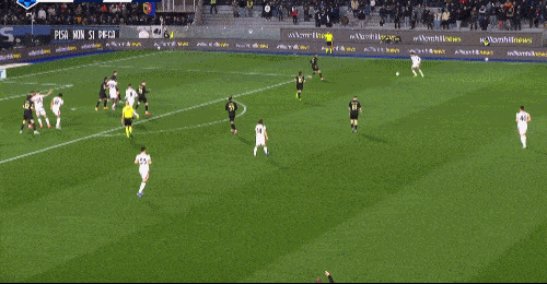 比萨0-1米兰半场数据:绝佳机会1-1,射门次数2-3