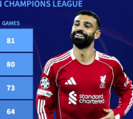 利物浦队史欧冠出场榜:萨拉赫居首,杰拉德、里瑟在列