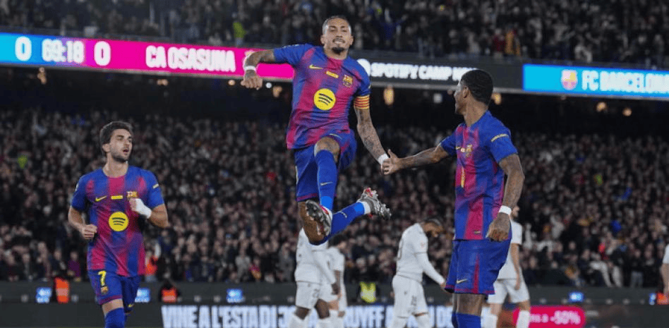 世体:拉菲尼亚破门后,巴萨球迷看台高唱"阿隆索,留下来"
