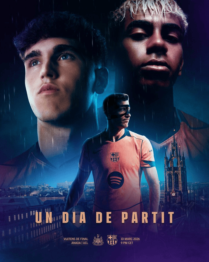 巴萨、纽卡发布赛事预告海报:亚马尔、库巴西、戈登出镜