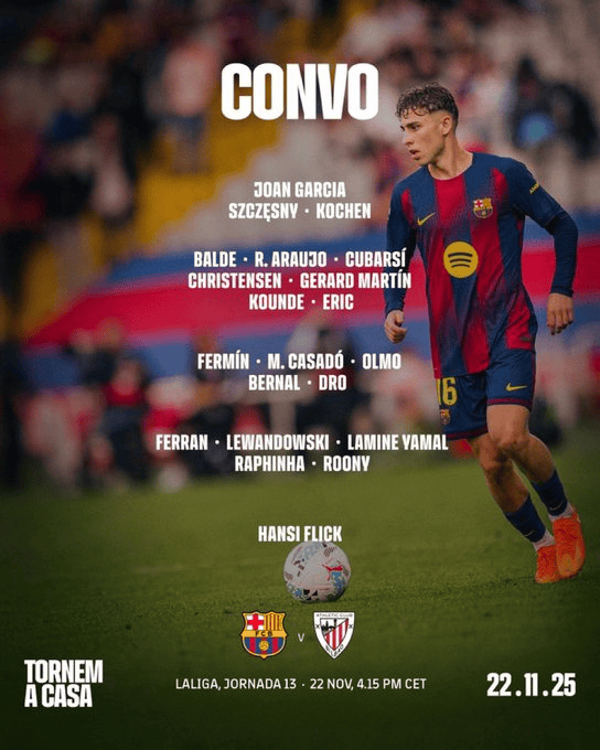 巴萨vs毕巴大名单:拉菲尼亚复出;德容,拉什福德缺席