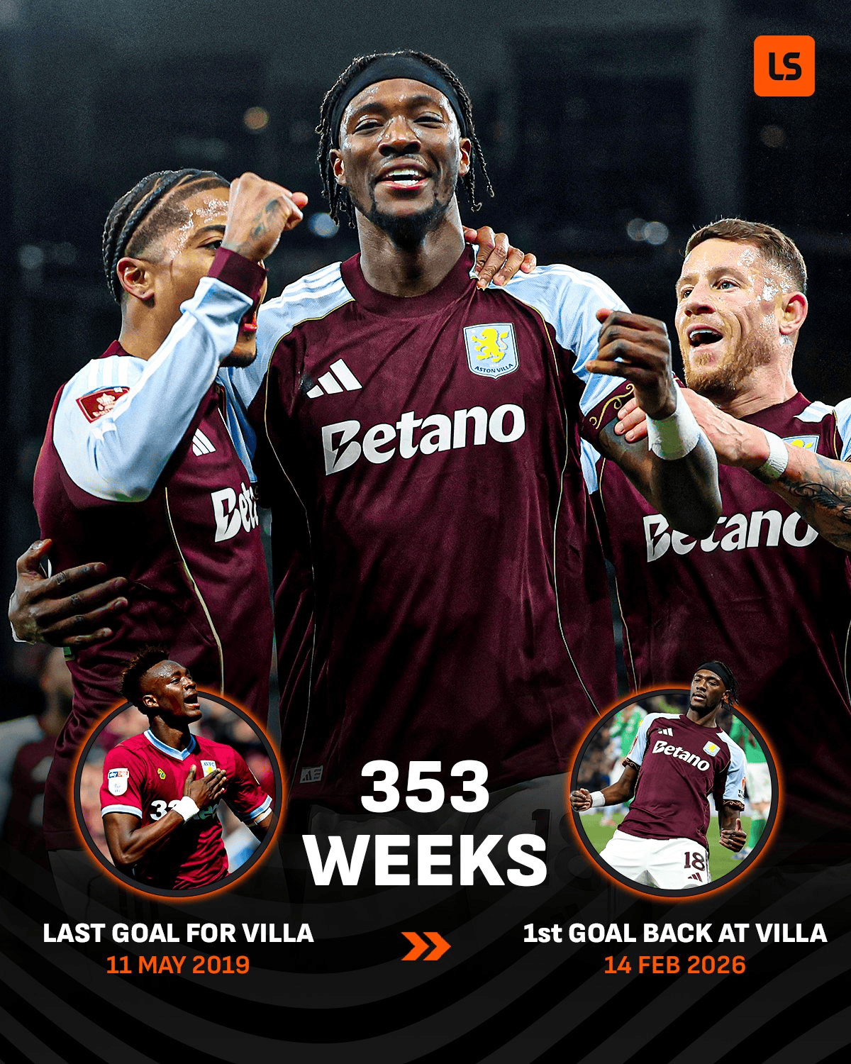 将近七年!亚伯拉罕时隔353周再次为阿斯顿维拉进球