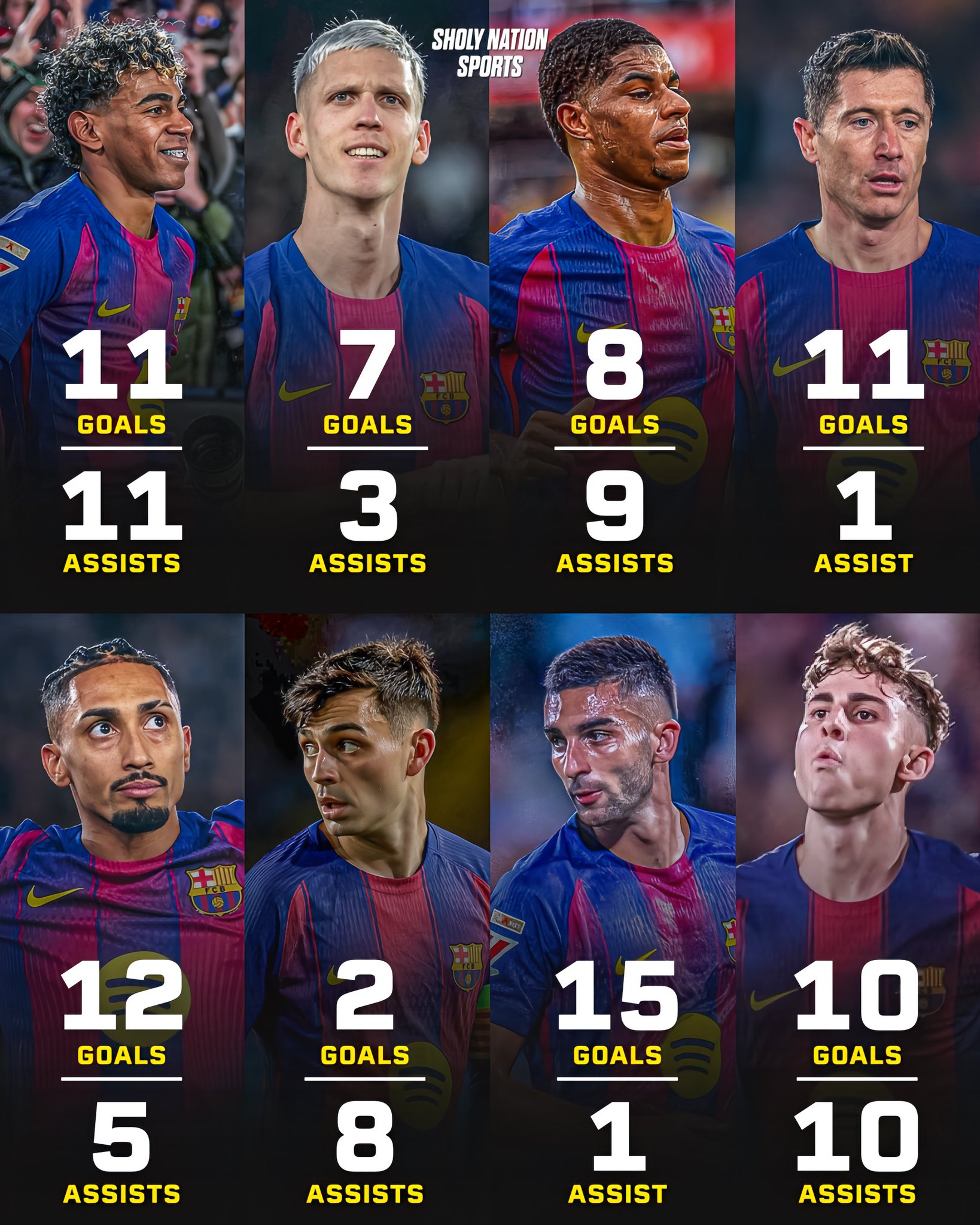 火力全开!巴萨本赛季已有8名球员参与进球上双