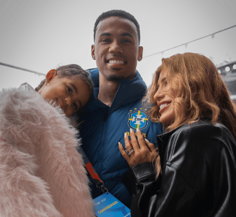 温馨氛围,加布社媒晒与妻子、女儿在酋长球场的合影