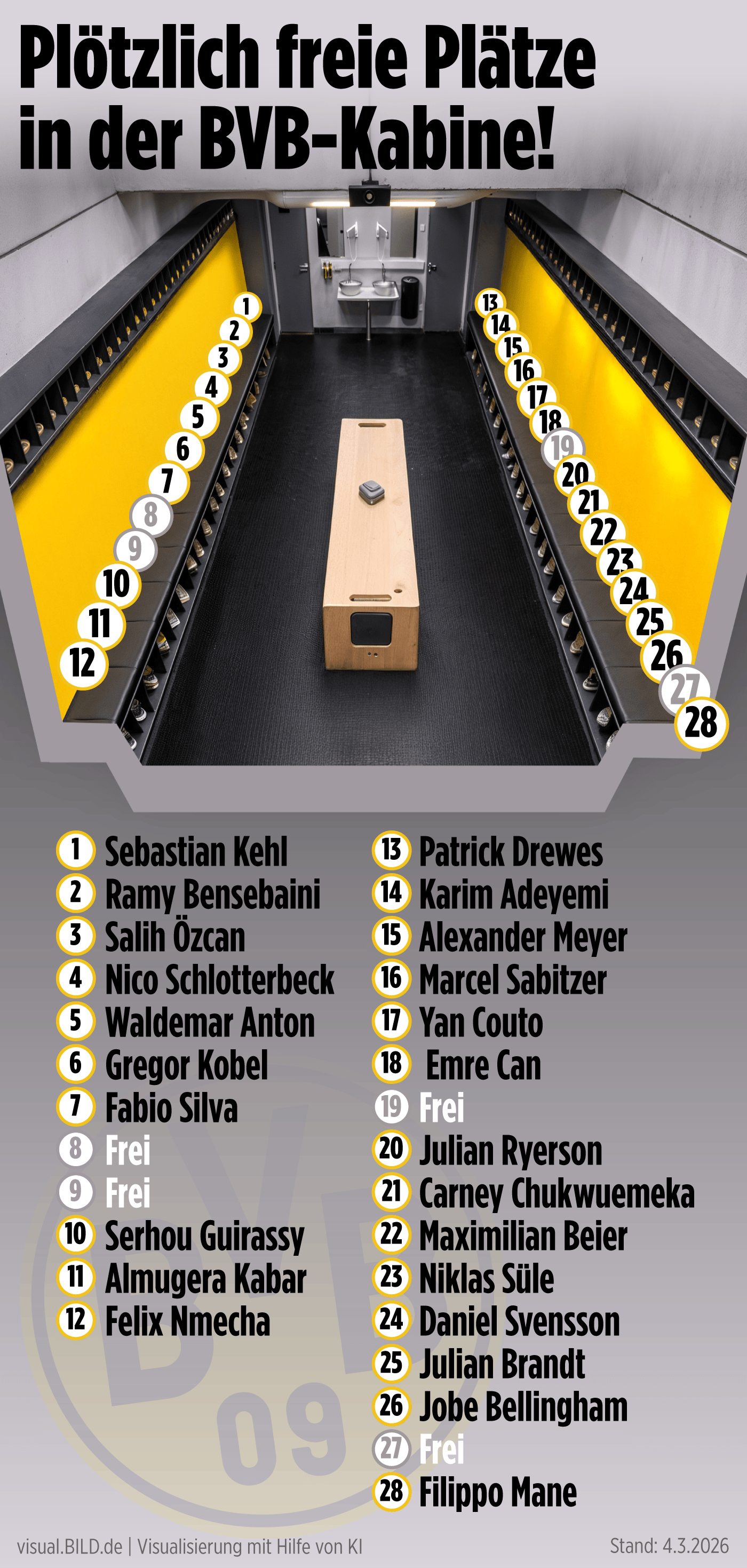 图片报解密多特更衣室座次:凯尔专属入口位,队长则分开坐