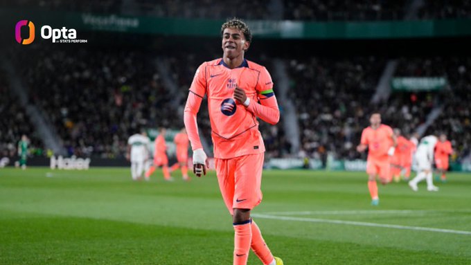 全场8次关键传球,官方:亚马尔当选埃尔切vs巴萨全场最佳