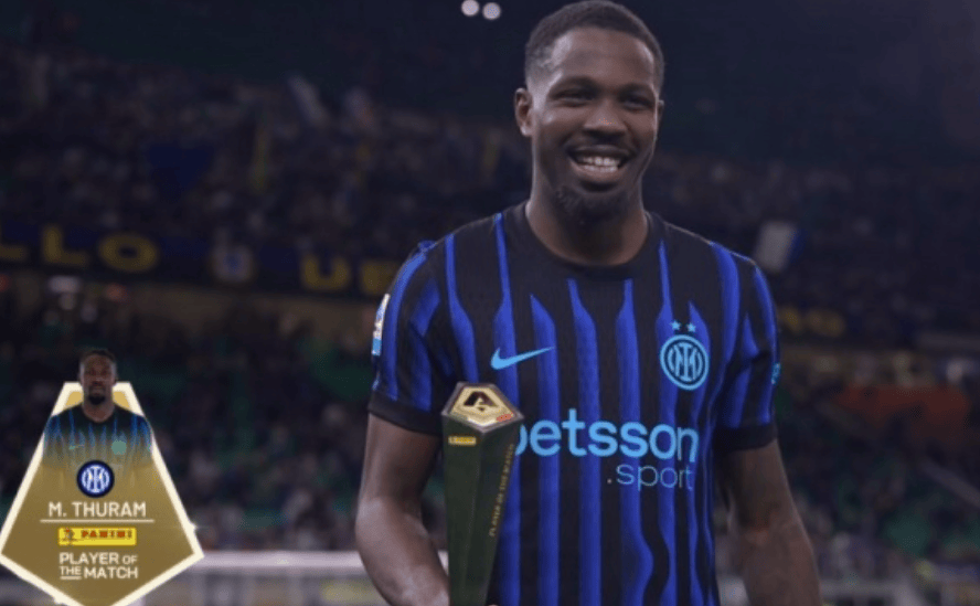 1射2传!官方:马库斯-图拉姆当选国米5-2罗马全场最佳