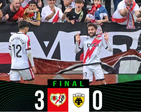 巴列卡诺3-0雅典AEK,帕拉松点射,乌奈-洛佩斯破门
