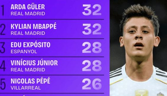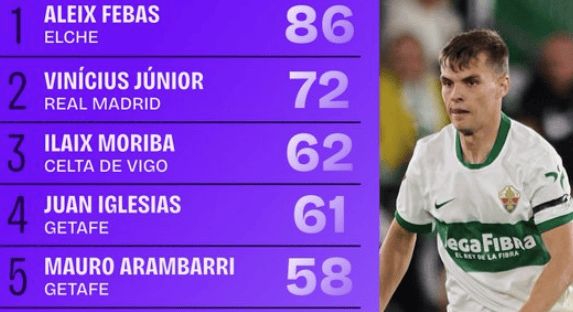 西甲本赛季禁区触球榜:维尼修斯、姆巴佩、亚马尔分列前三