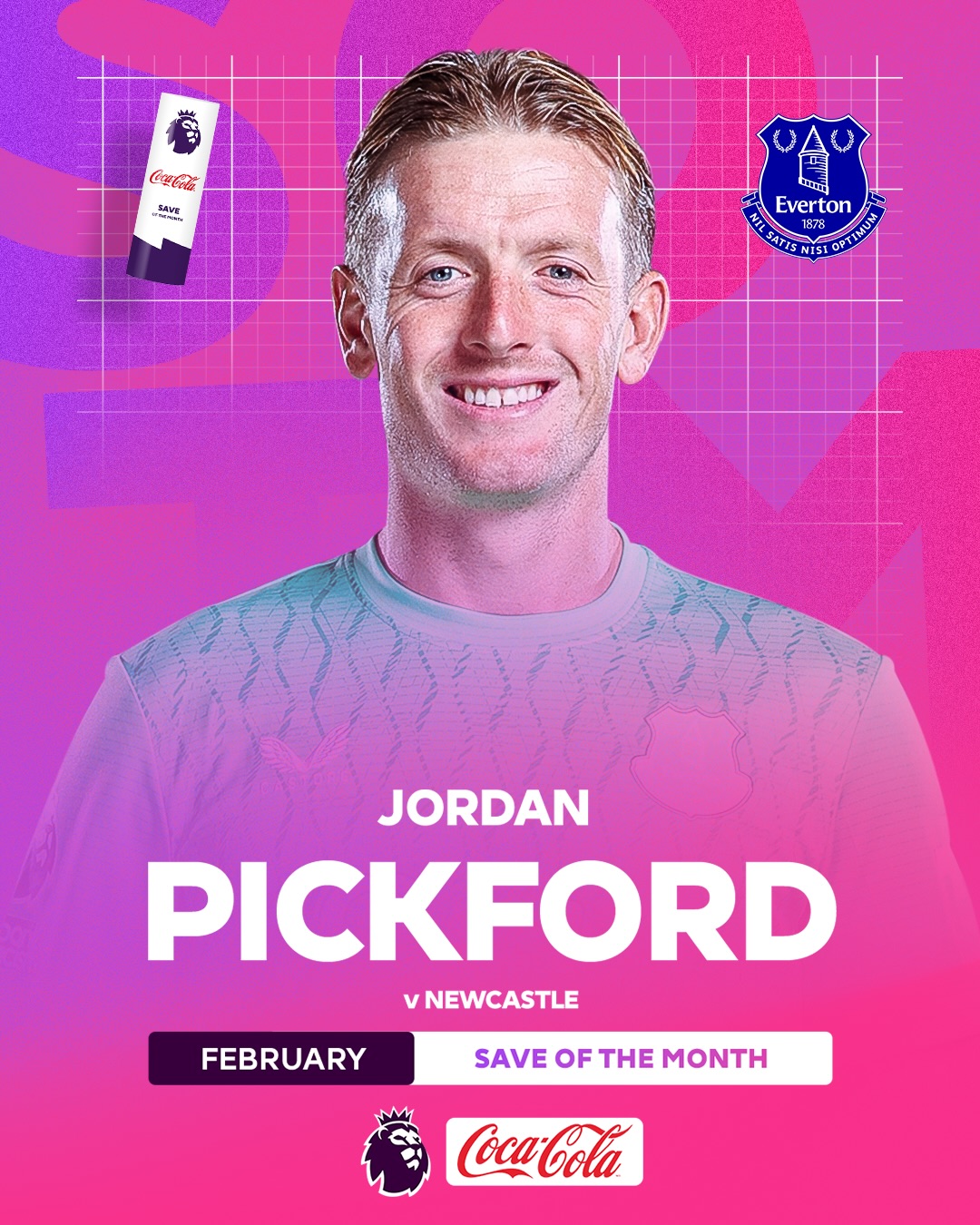英超官方:皮克福德对纽卡托纳利的扑救当选为2月最佳扑救