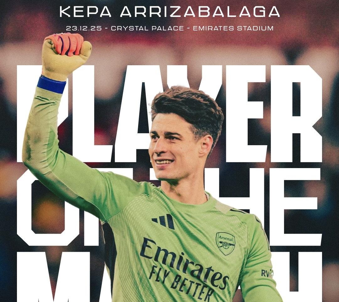 点球大战扑点制胜,阿森纳官方:凯帕当选胜水晶宫队内最佳