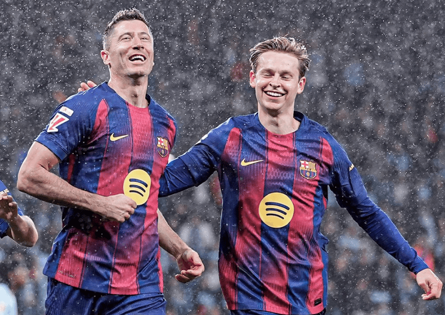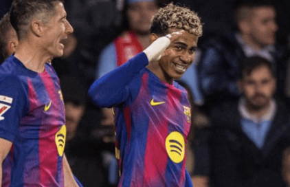 剑南春战报:塞尔塔2-4巴萨,莱万戴帽,亚马尔破门