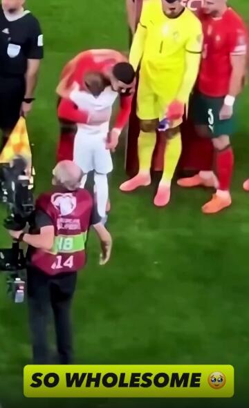 同匈牙利一战赛前小球童求抱抱,C罗暖心满足要求
