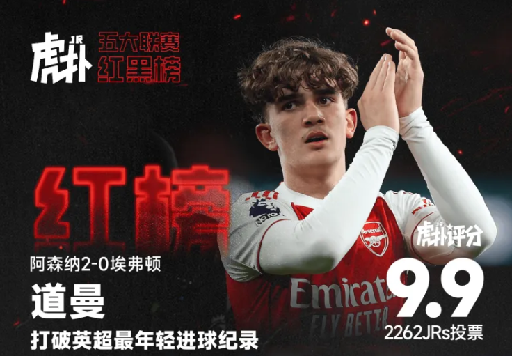 打入一球,官方:道曼当选为枪手vs埃弗顿一役球迷票选最佳