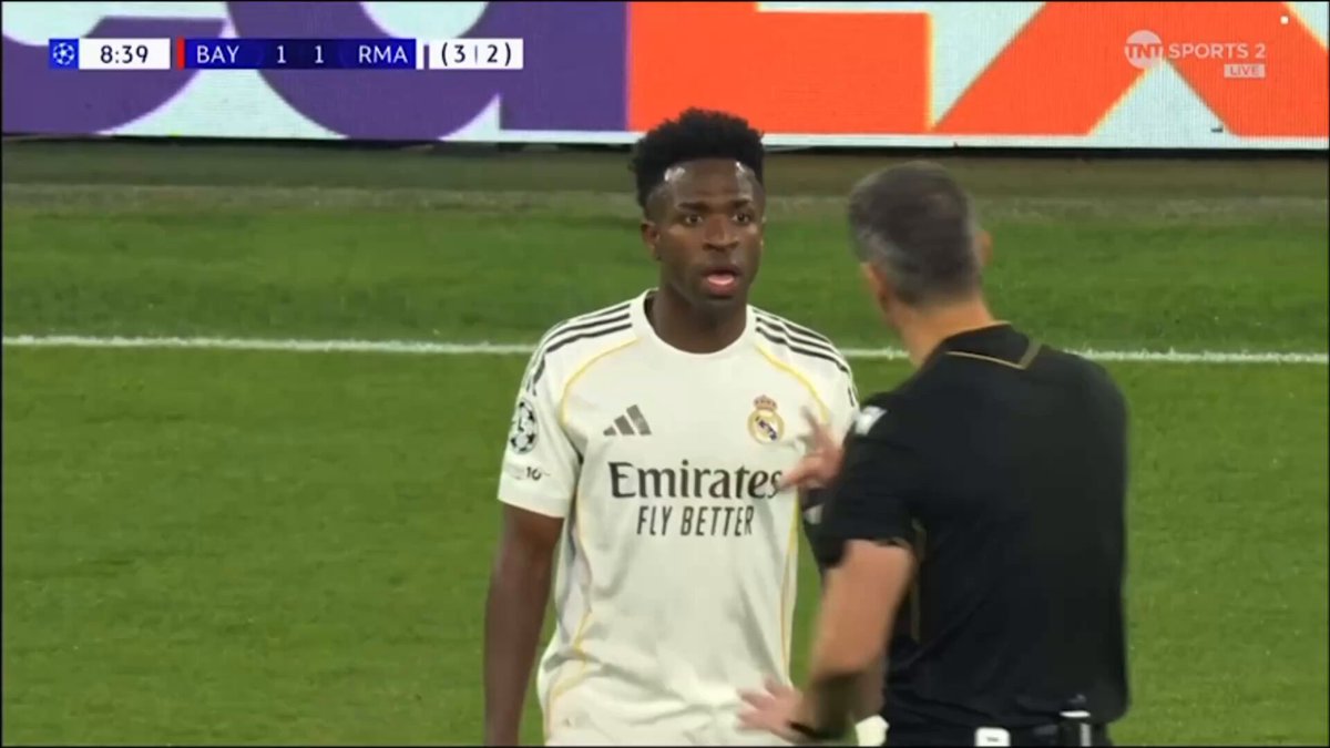 被连撞带推,基米希笑着走开,维尼修斯被裁判警告
