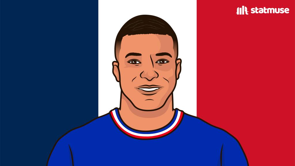 姆巴佩本赛季在俱乐部和国家队共出战23场比赛,打进24球