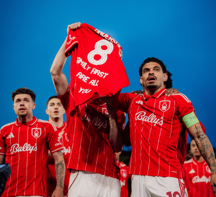 暖心,怀特进球后森林球员高举安德森球衣送上支持