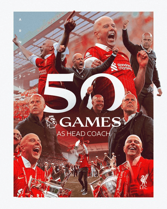 63%胜率!斯洛特迎执教利物浦第50场英超,前49场31胜9平9负