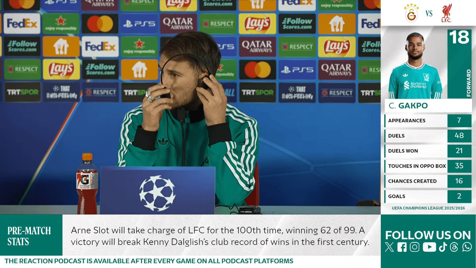 加拉塔萨雷vs利物浦首发:奥斯梅恩PK法棍,维尔茨出战