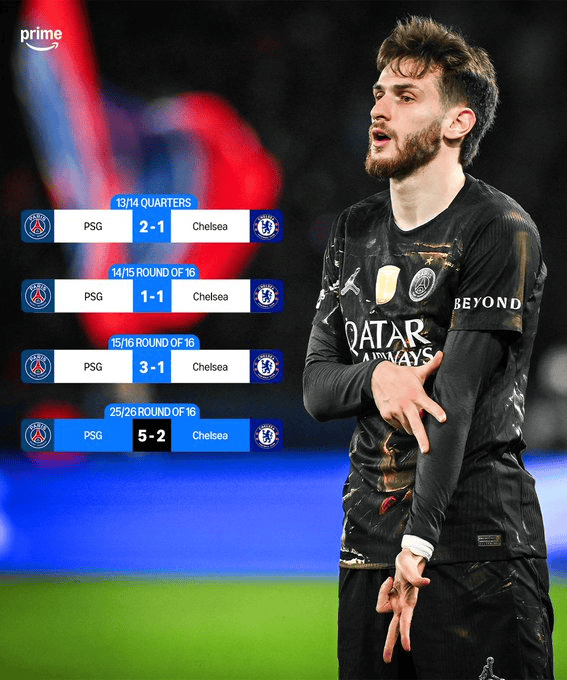 克瓦拉茨赫利亚推射破门梅开二度!巴黎5-2切尔西!