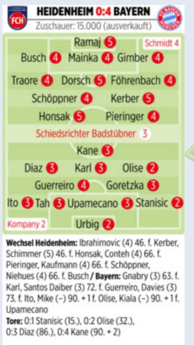 图片报评分:乌尔比希、斯坦、奥利塞2分好评