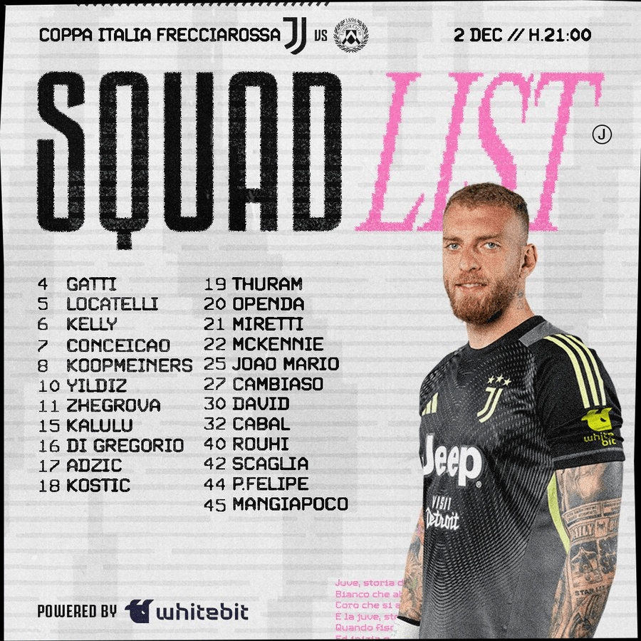 尤文意大利杯大名单:伊尔迪兹领衔,佩林、DV9缺阵
