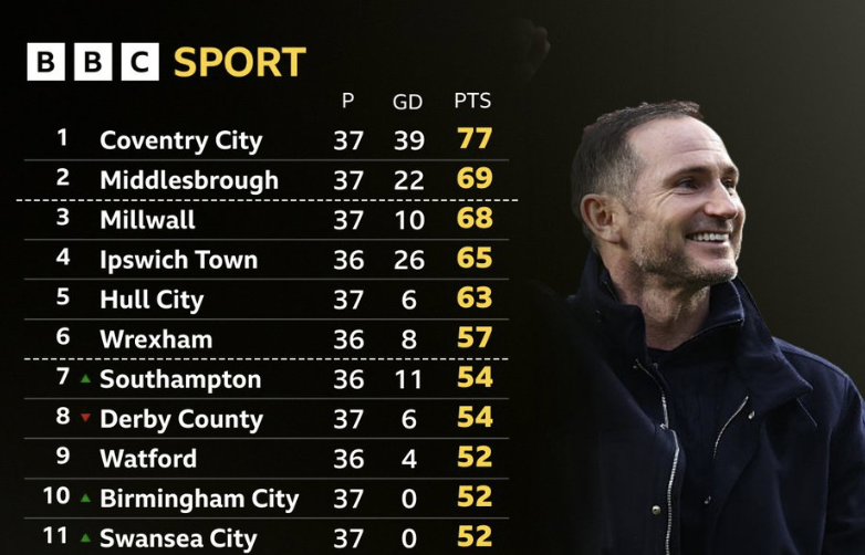 英冠剩9轮领先第二名8分,考文垂冲击英超形势大好