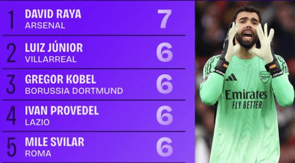 世欧预零封榜:皮克福德居首,乌奈西蒙/斯特拉科沙在列