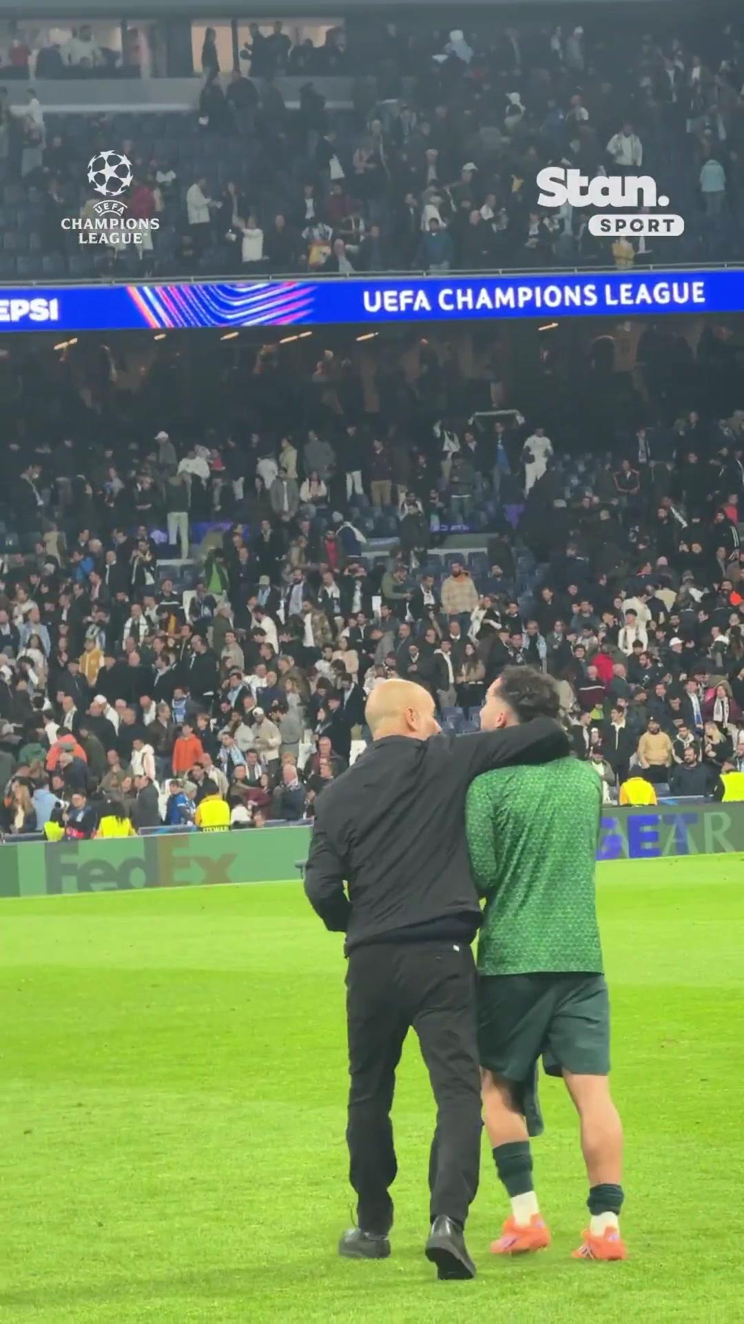 瓜迪奥拉赛后揽着谢尔基耳语,随后两人亲密拥抱