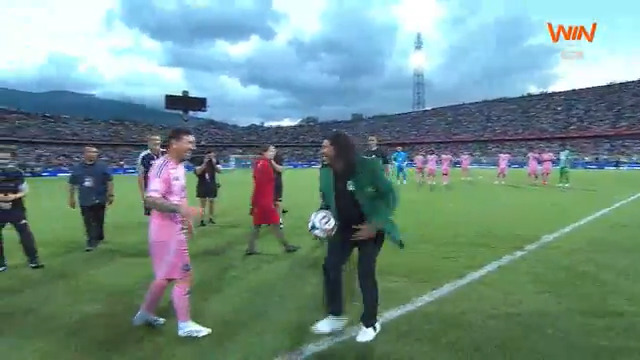 国民竞技传奇伊基塔与梅西赛前互动,蝎子摆尾引发全场欢笑