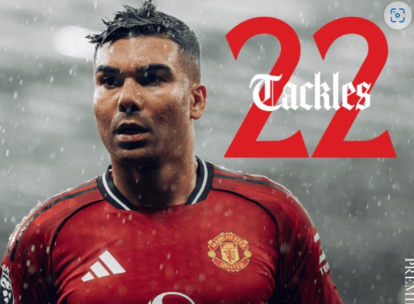 22次,卡塞米罗是本赛季在英超抢断次数最多的曼联球员