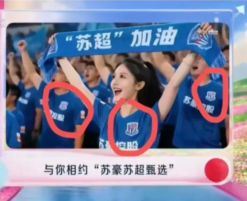 江苏卫视直播苏超时,AI球迷胸前的队徽神似申花