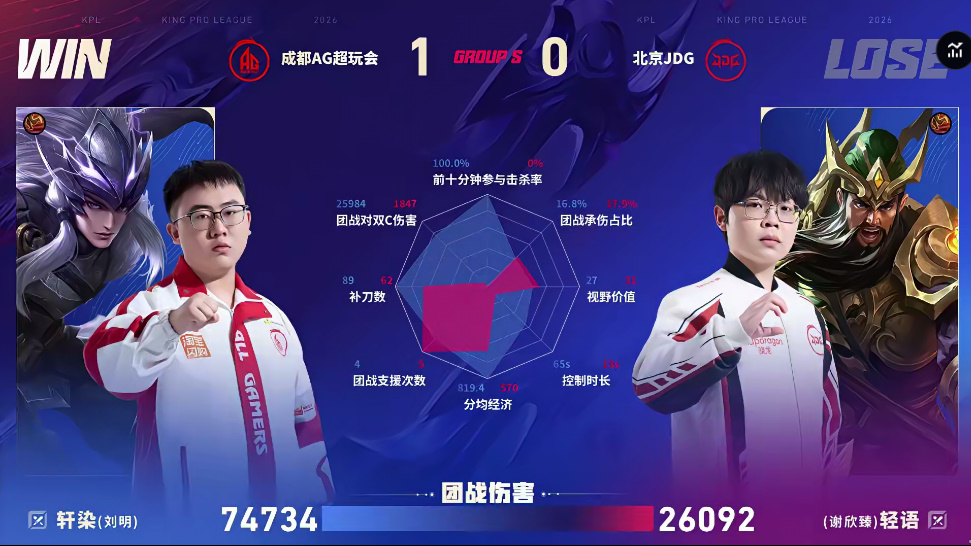 成都AG超玩会 2-0 北京JDG,本场选手表现你打几分?
