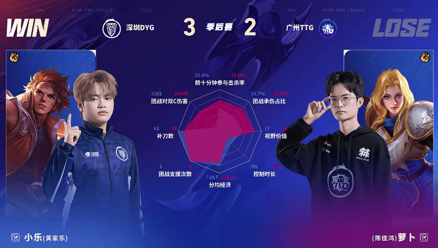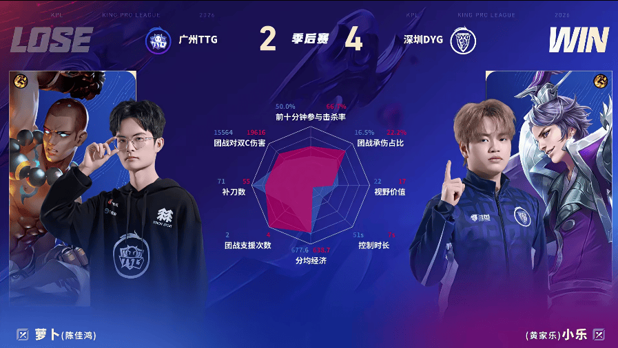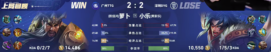 DYG/TTG第五局数据对比:钎城阿离线杀率百分百,多数据领先
