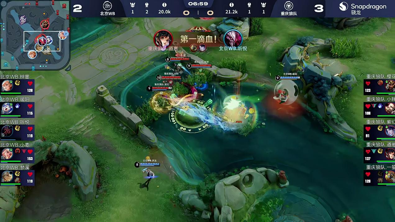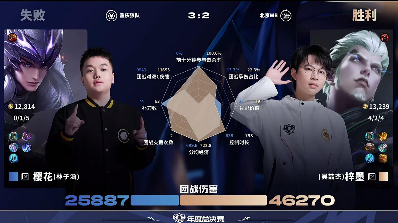 WB/狼队第5局数据对比:听悦貂蝉团战伤害高于紫幻海诺
