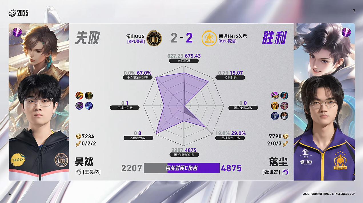 Hero/UUG第4局数据对比:落尘元坦将昊然暃打成“针”