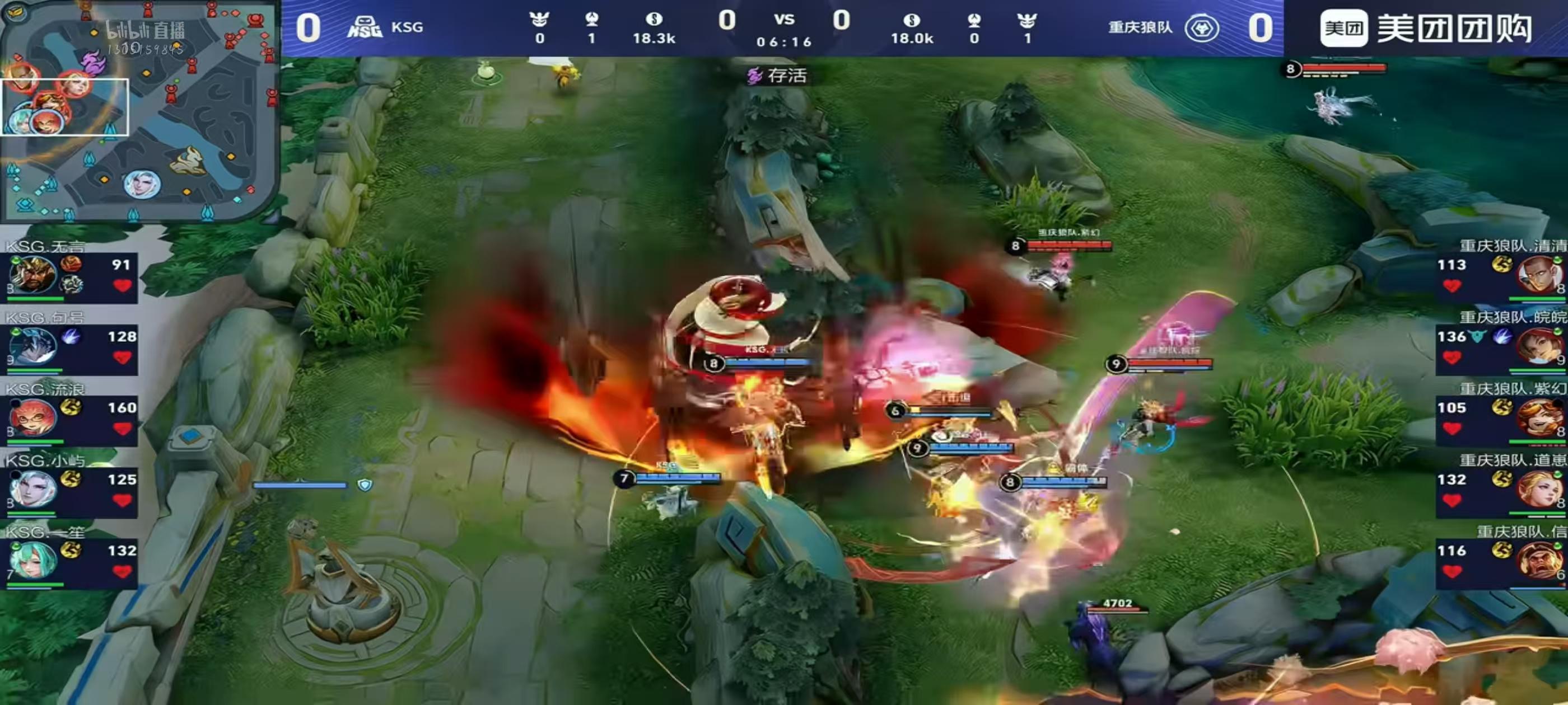 水晶前团战,无言关羽限制狼队双c,快手打出0换3