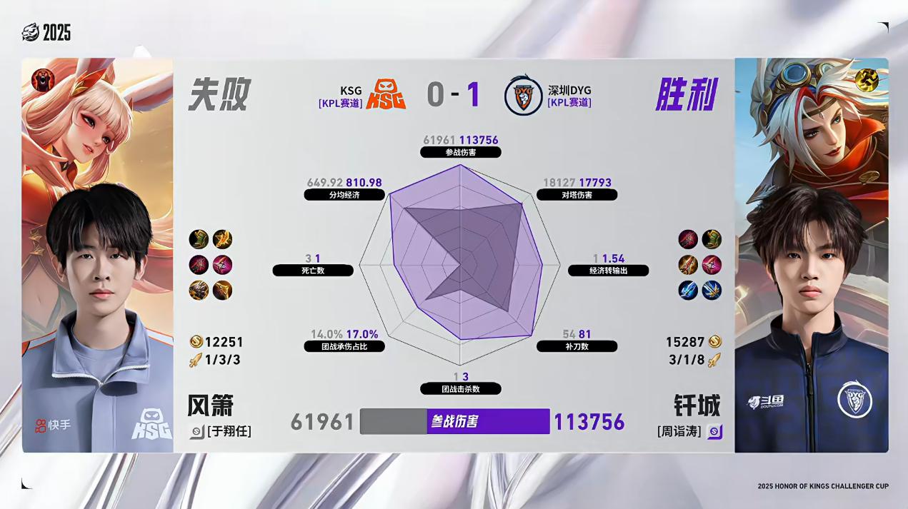 DYG/KSG第1局数据对比:钎城戈娅几乎全包围风箫公孙离