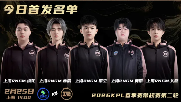 DRG vs RNG.M首发出炉:樱花、赤辰、奕雨首发