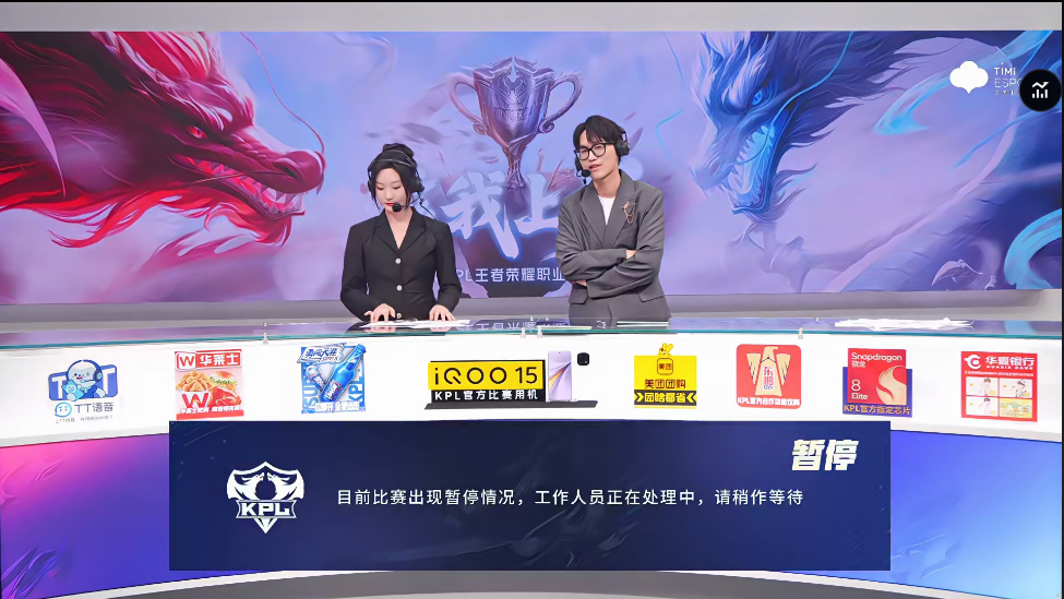 AG对阵TES第1局:目前比赛再次出现暂停情况,请稍作等待
