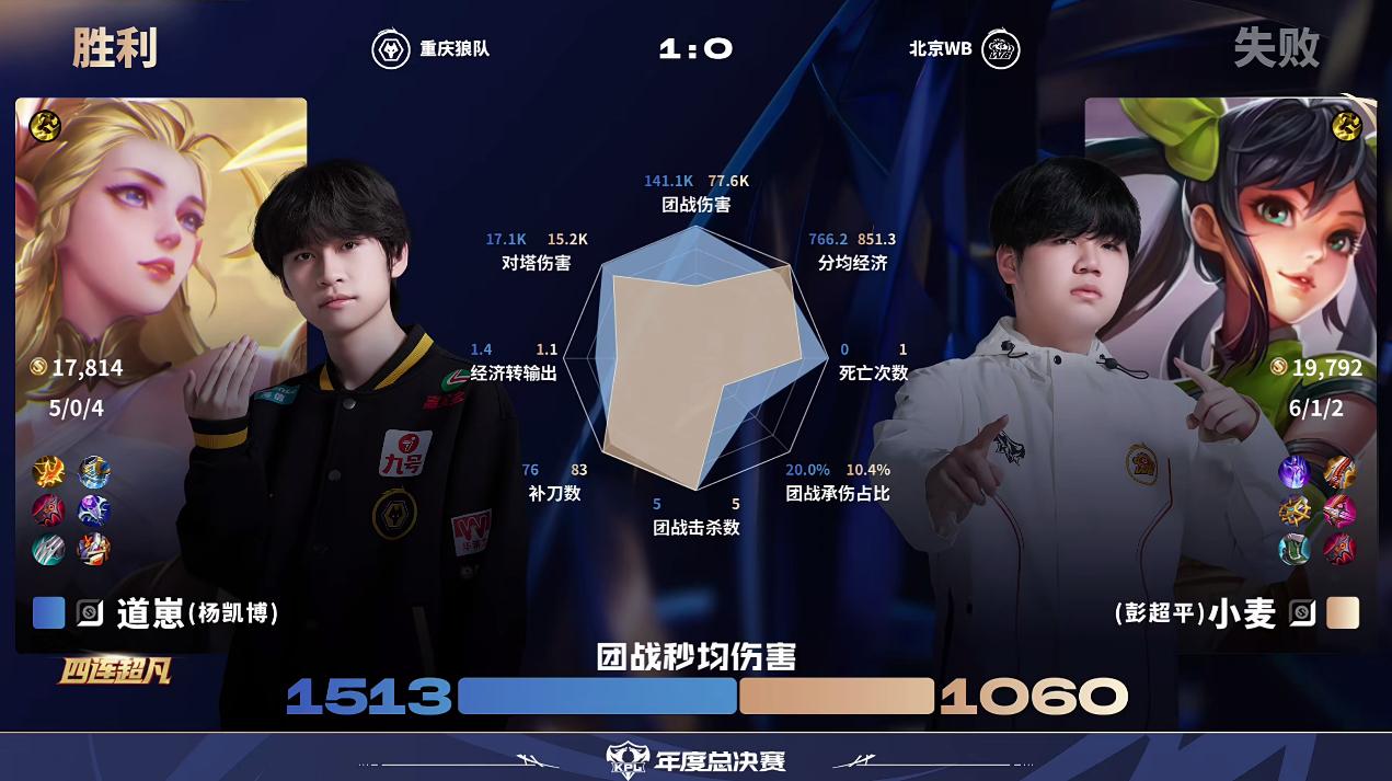 重庆狼队 1-0 北京WB,本场选手表现你打几分?