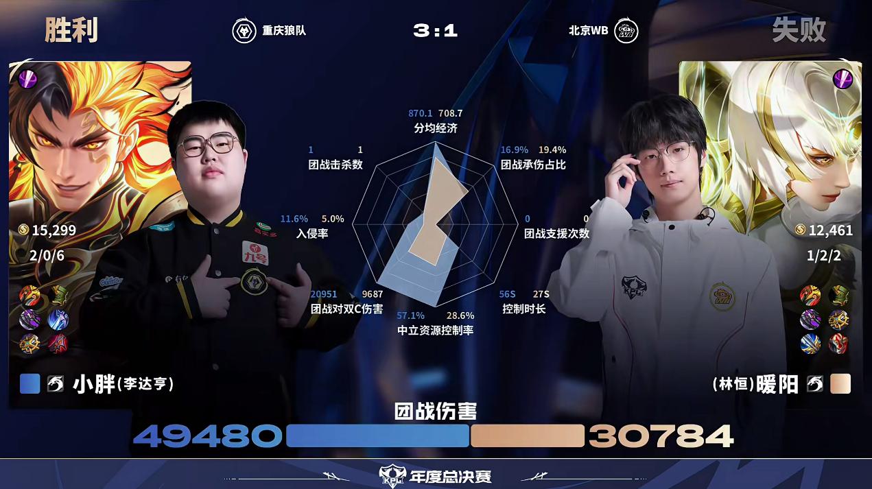 狼队/WB第4局数据对比:小胖老朋友裴擒虎胜暖阳一筹